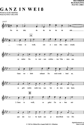 Ganz In Weiss - Sheet Music for recorder Roy Black