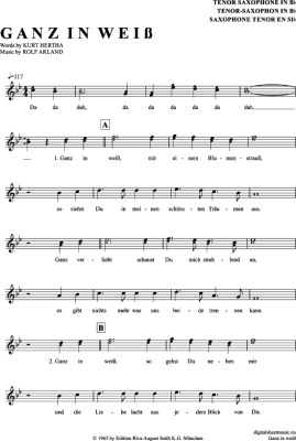 Ganz In Weiss - Sheet Music for Tenor Saxophone Roy Black