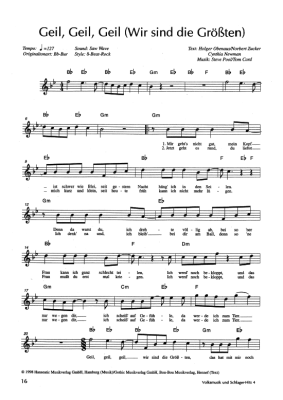 Geil, Geil, Geil (Wir sind die Größten) - Sheet Music for Vocal and Chords Wolfgang Petry