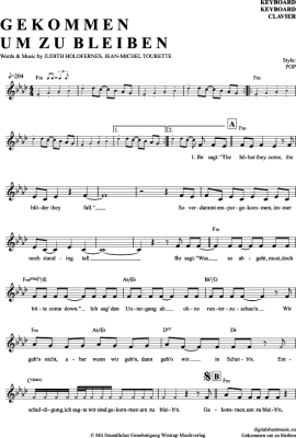 Gekommen Um Zu Bleiben - Sheet Music for Keyboard Wir Sind Helden