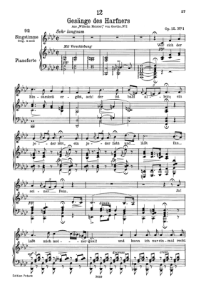 Gesänge des Harfners D.478-1 - Sheet Music for Low Voice and Piano Franz Schubert