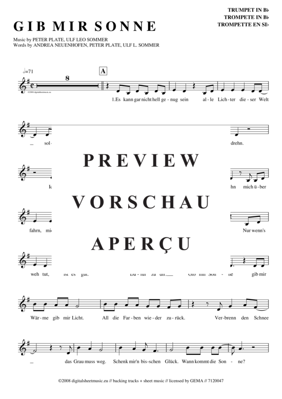| . | zwei professionell produzierte MP3-Playbacks erhältlich (mit Melodie + ohne Melodie) | |