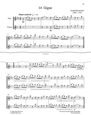 Gigue, composed by Joseph Boismortier and arranged by Paul Harris for flute and clarinet duet in digital sheet music format.