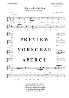 Gloria in Excelsis Deo - Engel lassen laut erschallen - Sheet Music for soprano recorder solo + chords Traditional