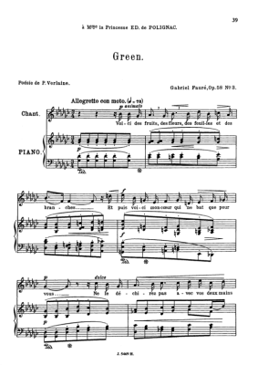 Green Op.58 No.3 - Sheet Music for Medium Voice and Piano Gabriel Fauré