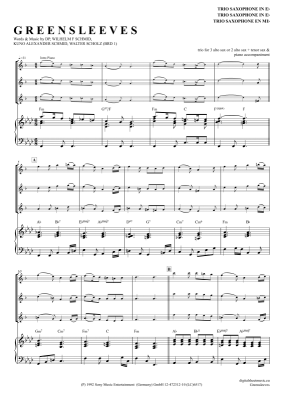 Greensleeves - Sheet Music for Saxophon Trio AAAT + Klavier Edward Simoni