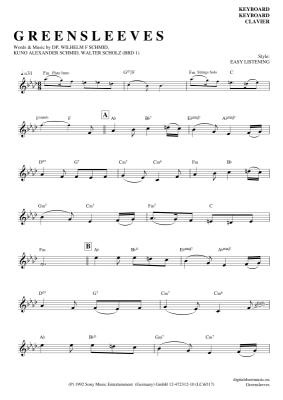 Greensleeves - Sheet Music for Keyboard Edward Simoni
