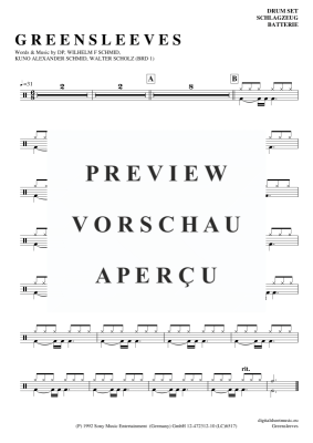 Greensleeves - Sheet Music for Drums Edward Simoni
