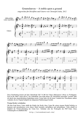 Greensleeves - Sheet Music for alto recorder + guitar anonym (arr. Christoph Dalitz)