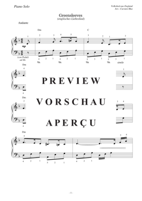 Greensleeves - Sheet Music for Piano solo easy Traditional/Mus, Carsten