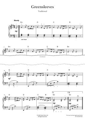 The traditional work Greensleeves. Arranged for easy piano in digital sheet music format and taken from The Faber Music Easy Piano Anthology.
