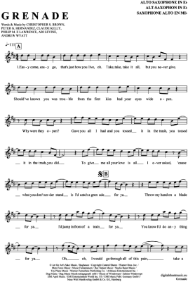 Grenade - Sheet Music for Alto Saxophone Bruno Mars