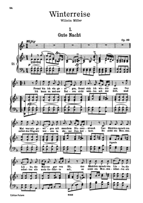 Gute Nacht D.911-1 (Winterreise) - Sheet Music for High Voice and Piano Franz Schubert