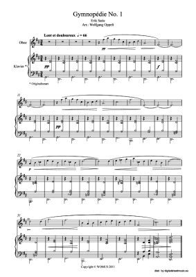 Gymnopedie No. 1 - Sheet Music for oboe + piano/organ Erik Satie (arr. WO)