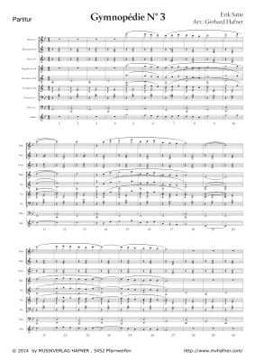 Gymnopedie No. 3 - Sheet Music for large wind orchestra Erik Satie