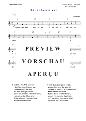 Hänschen Klein (C - Dur) - Sheet Music for soprano recorder solo Traditional