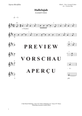 Hallelujah (D-Dur) - Sheet Music for Recorder Leonard Cohen