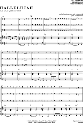 Hallelujah - Sheet Music for Trombone Trio + Piano Leonard Cohen