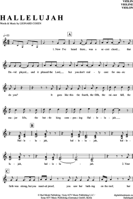 Hallelujah - Sheet Music for violin Leonard Cohen