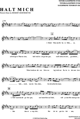 Halt Mich - Sheet Music for Tenor Saxophone Herbert Grönemeyer
