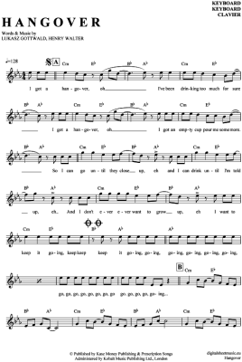 Hangover - Sheet Music for Keyboard Taio Cruz