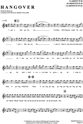 Hangover - Sheet Music for Clarinet in B-flat Taio Cruz