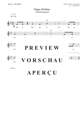 Happy Birthday (Geburtstagslied) - Sheet Music for Easy Soprano Recorder Traditional