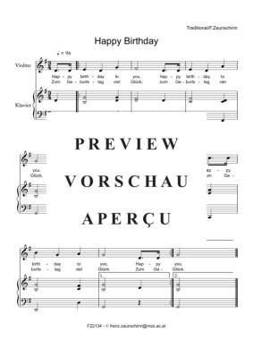 Happy Birthday - Sheet Music for violin + piano simple Traditional