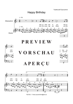 Happy Birthday - Sheet Music for alto saxophone + piano moves Traditionell