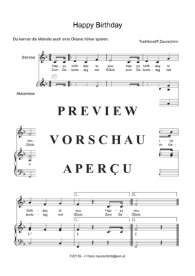 Happy Birthday - Sheet Music for accordion easy Traditionell