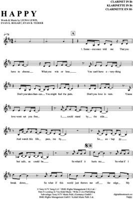 Happy - Sheet Music for Clarinet in B-flat Leona Lewis