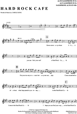 Hard Rock Cafe - Sheet Music for Alto Saxophone Carole King