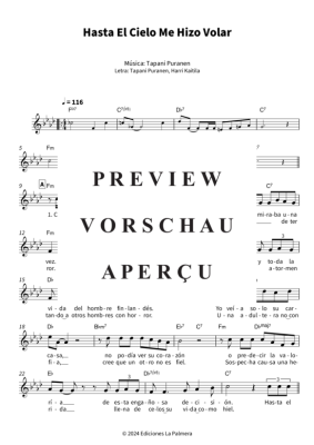 Hasta El Cielo Me Hizo Volar - Sheet Music for Voice and Chords Leadsheet Tapani Puranen