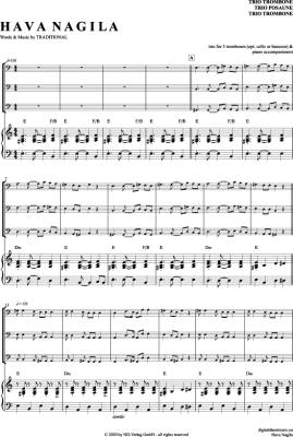 Hava Nagila - Sheet Music for Trombone Trio + Piano Traditional