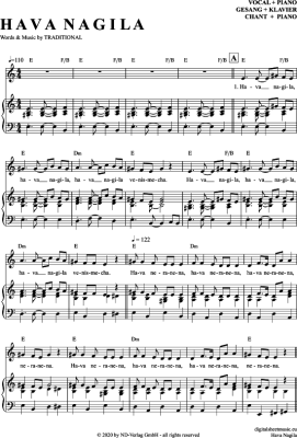 Hava Nagila - Sheet Music for Piano and Voice Traditional