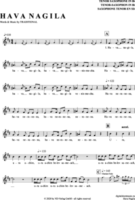 Hava Nagila - Sheet Music for Tenor Saxophone Traditional