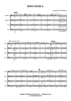 Hava Nagila - Sheet Music for Tuba Quartet: 2x Baritone, 2xTuba Traditional