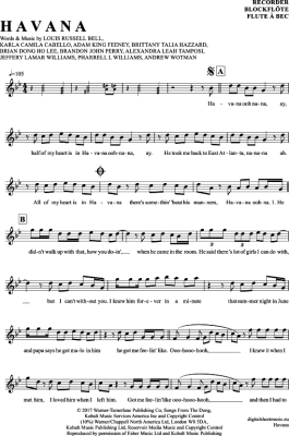 Havana - Sheet Music for recorder Camila Cabello