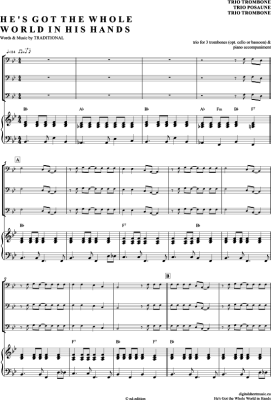 He´s got the whole world in his hands - Sheet Music for Trombone Trio + Piano American Spiritual