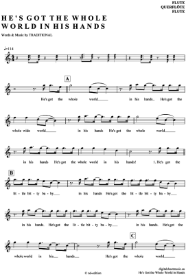 He´s got the whole world in his hands - Sheet Music for transverse flute American Spiritual