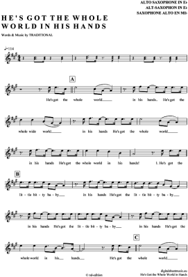 He´s got the whole world in his hands - Sheet Music for Alto Saxophone American Spiritual
