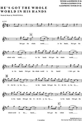 He´s got the whole world in his hands - Sheet Music for Tenor Saxophone American Spiritual
