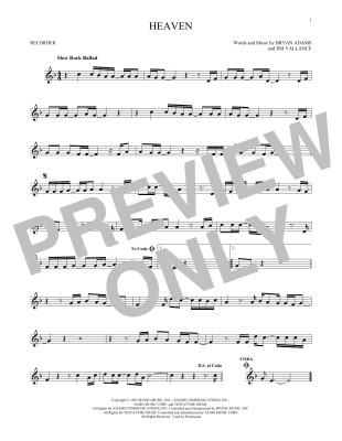 Heaven - Sheet Music for Bryan Adams