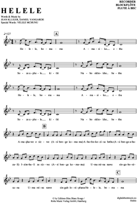 Helele - Sheet Music for recorder Velile & Safri Duo