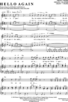 Hello Again - Sheet Music for Piano and Voice Howard Carpendale