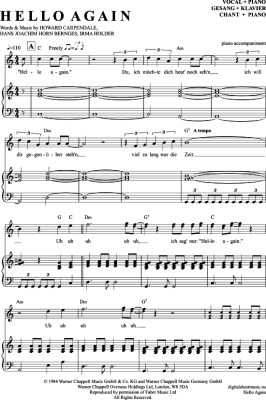 Hello Again - Sheet Music for Voice with Piano Accompaniment Howard Carpendale