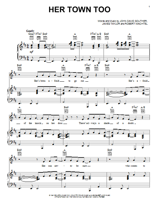 Her Town Too (Piano, Vocal & Guitar Chords (Right-Hand Melody))