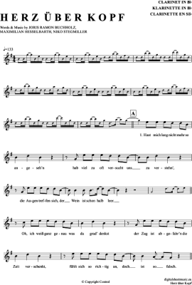 Herz über Kopf - Sheet Music for Clarinet in B-flat Joris