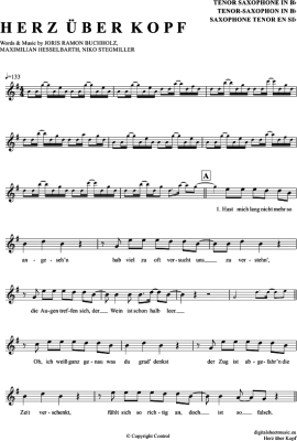 Herz über Kopf - Sheet Music for Tenor Saxophone Joris