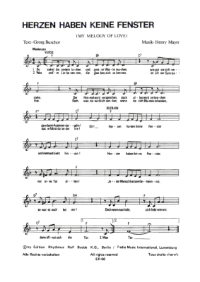 Herzen haben keine Fenster - Sheet Music for vocals + chords Elfi Graf